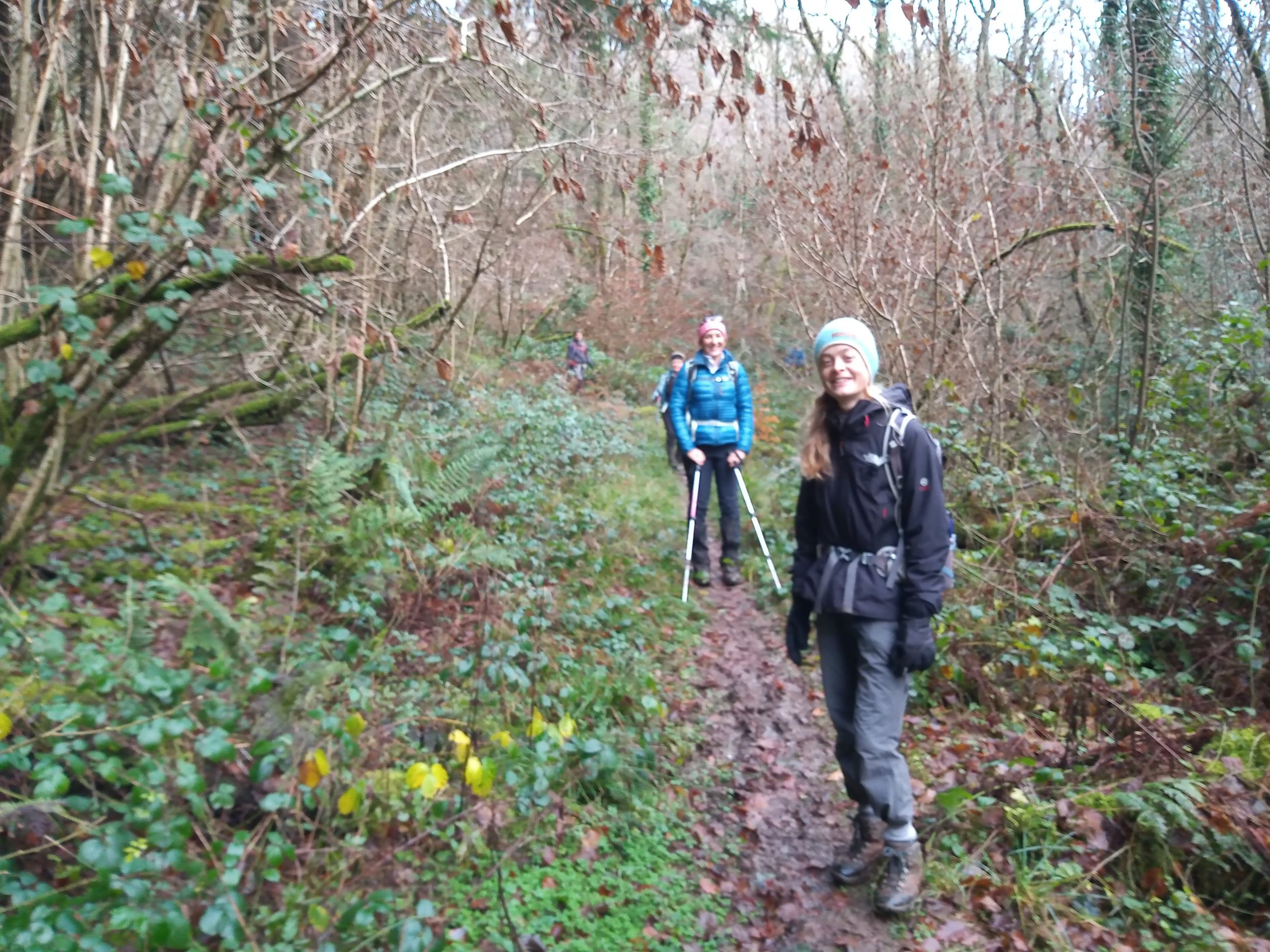 Some of the ploughing through the undergrowth in Julie’s training for the 100 and she can’t be far behind Dave Morgan with her brave efforts. She walked nearly 30 miles today and much of that alone, which shows great resilience as I get distracted and pop into a pub if I am left alone on a walk…