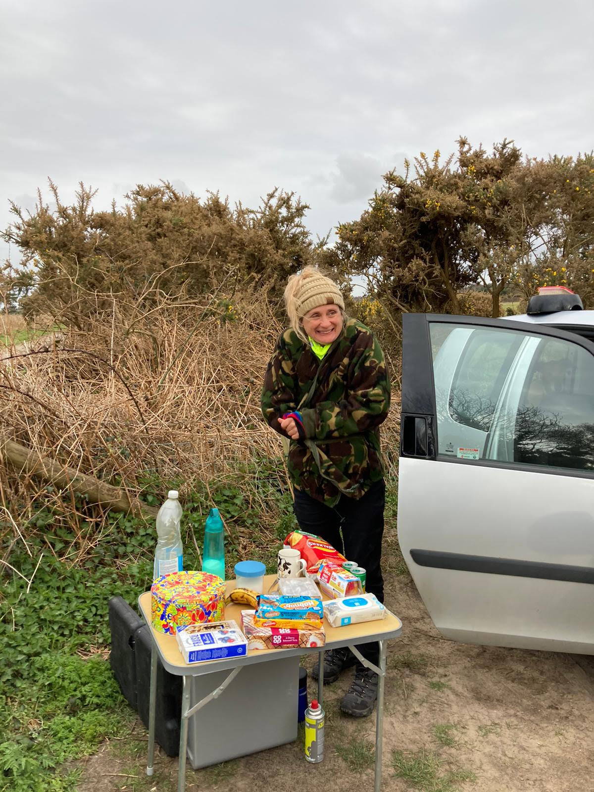 In the above photo is Chelle and an impromptu checkpoint she set up for four others in Norfolk & Suffolk group who were walking fifty miles as part of their training. As Alan Partridge says, so ruddy, bloody brave.