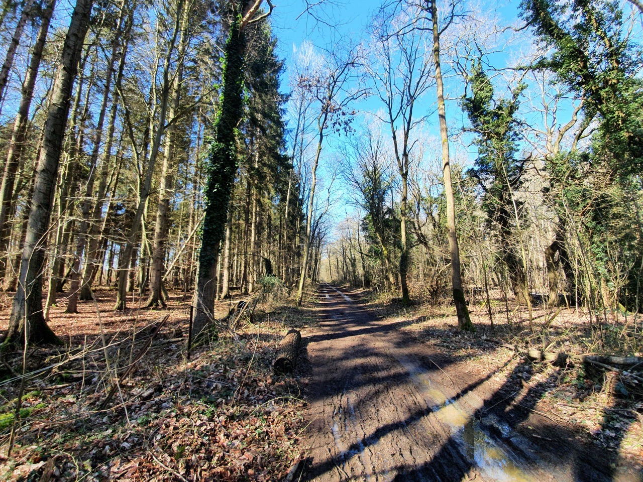 Trees and mud. The route isn’t too bad, but there are some moist patches along the way.