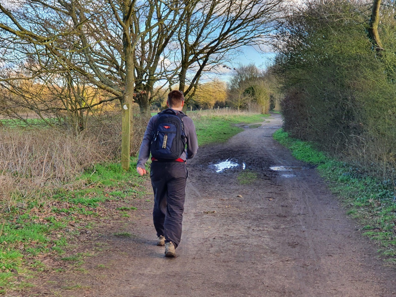 It was at this point Nathan hurt his foot. This was caused by not very artfully avoiding a muddy patch, but it’s important to be sympathetic, so I was. Well, to a point. He bravely carried on walking, although he did mention getting the bus home which I ignored. Fortunately, Nathan’s broken foot managed to be much better as we got into Norwich, so he was able to hobble home. But, I’d say he was brave during this incident and did keep going, which is very notable indeed. I asked regularly how his foot was, to show how caring I was. I’m not sure I bothered to listen to the answer half the time, but it was a nice gesture on my behalf anyway.