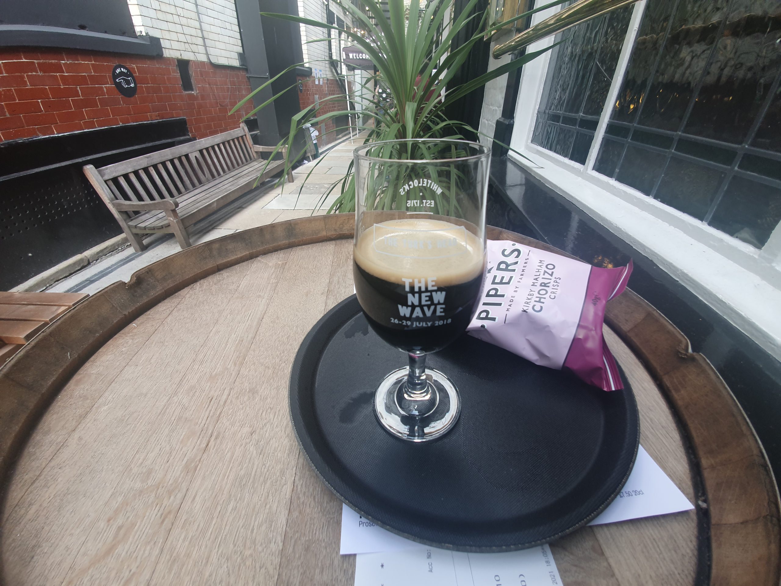 I accidentally ordered a packet of crisps with the beer as food pairing is absolutely important. And, as for the beer, it was beautiful. There was a richness of toffee and it was packed with liquorice flavour as well, with an aftertaste of Werther’s Originals. This was a decadent treat and I was delighted to be able to try it. Really nice.