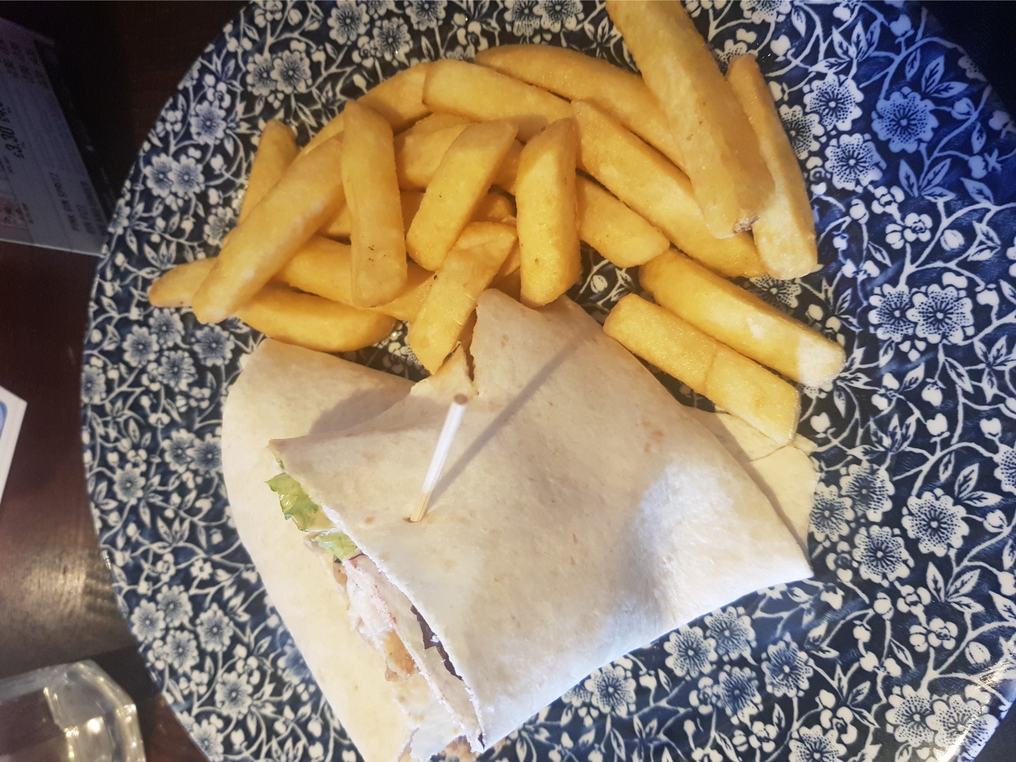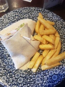 The staff member who served us the food and drink was on the other end of the competence spectrum. He was engaging, conversational and had a real presence within the pub, although he didn’t seem to be a manager. His check back seemed authentic and he cleared the plates promptly. The chicken wrap was fine and represented decent value for money.