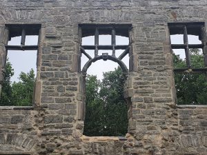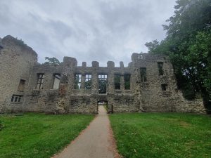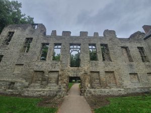 There are still blackened areas around the windows, evidence of the fire. Abbey House was constructed at the beginning of the nineteenth century to the side of this burnt out structure, but this section was never incorporated in. In the last few years there have been a few concerns about the stability of these ruins, but some money has been spent on ensuring that they’re protected.
