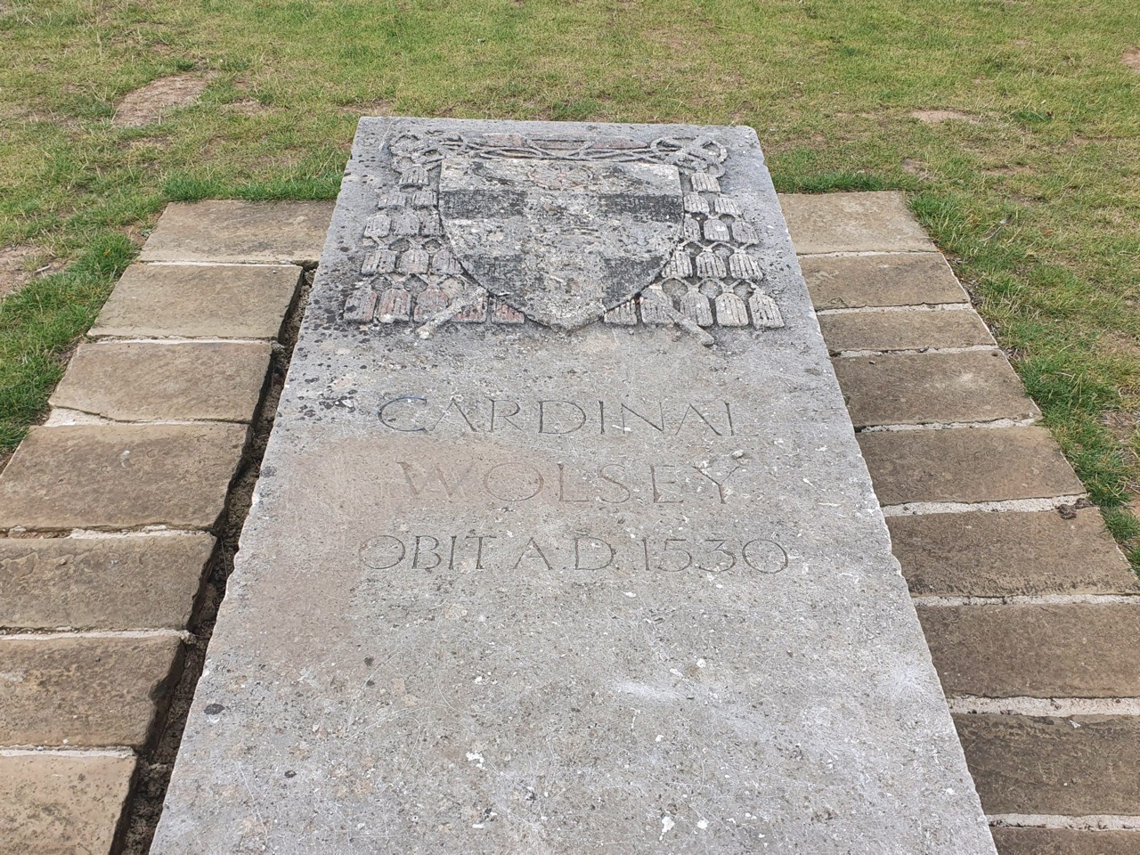 This is where Leicester Abbey once stood, with these stones being added in the 1920s which mark out the lines of the former walls. It’s known from contemporary writers that Wolsey was buried in the abbey’s Lady Chapel.