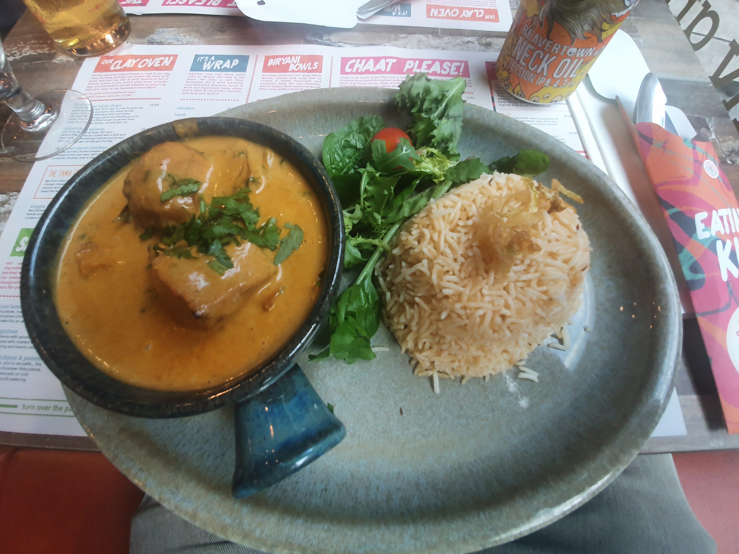 The food portion didn’t look that large at first, but it was much more filling than I thought. This is the chicken khurana, which had a suitably rich taste with numerous flavours. The sweet potato added texture and the chicken pieces were tender and moist. I’m never convinced about salad as it scares me, but it tasted as expected, with the rice again being a bigger portion than this photo suggests.