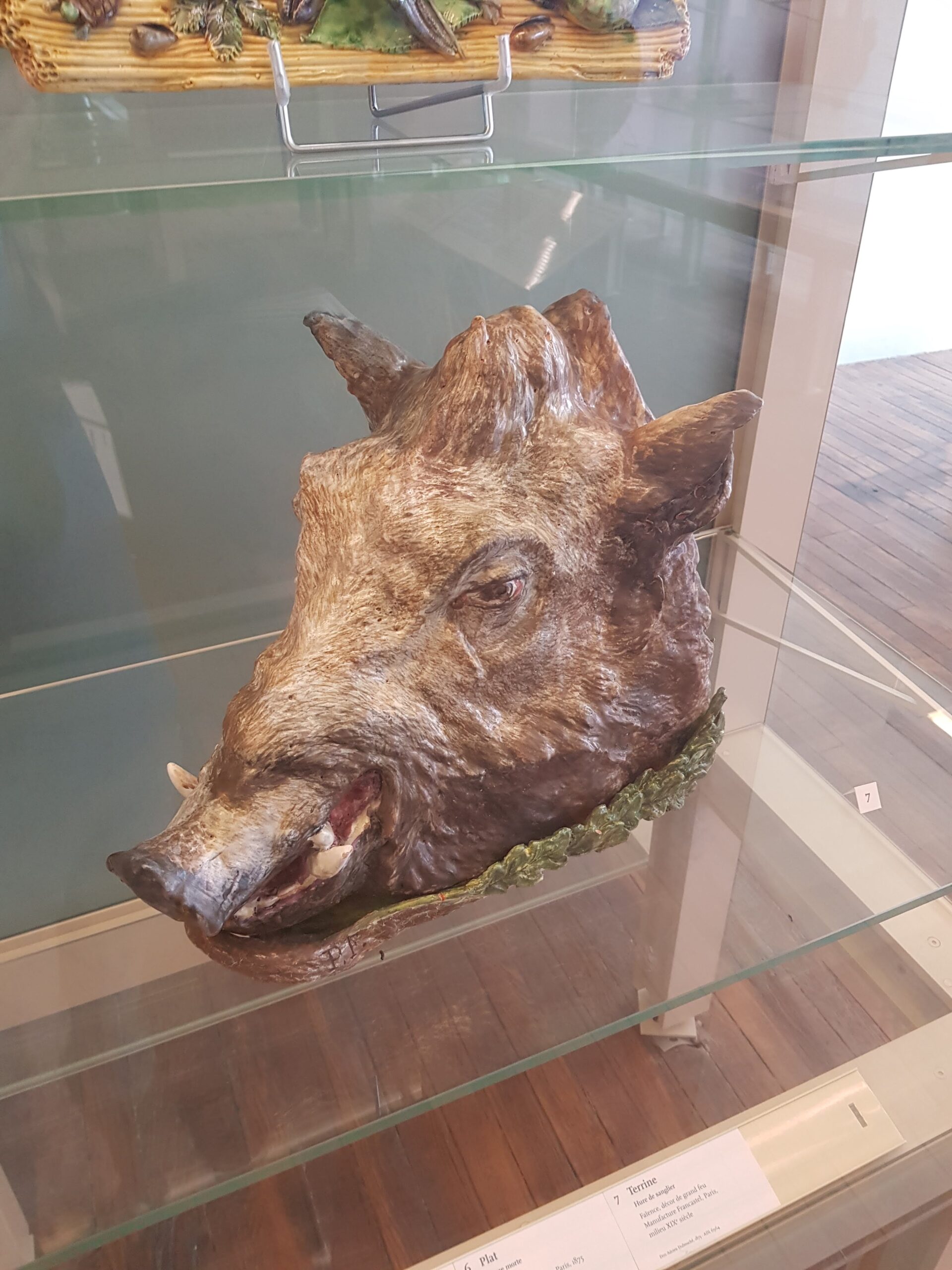 This piece puzzled me for some time, it’s modern and made from porcelain and metal. Well, that’s what the description said, but it honestly looked like a leather bag to me even up close. If it actually is pottery, and I have no reason to doubt that it isn’t since it’s in a pottery museum, then this is an incredible piece of work.