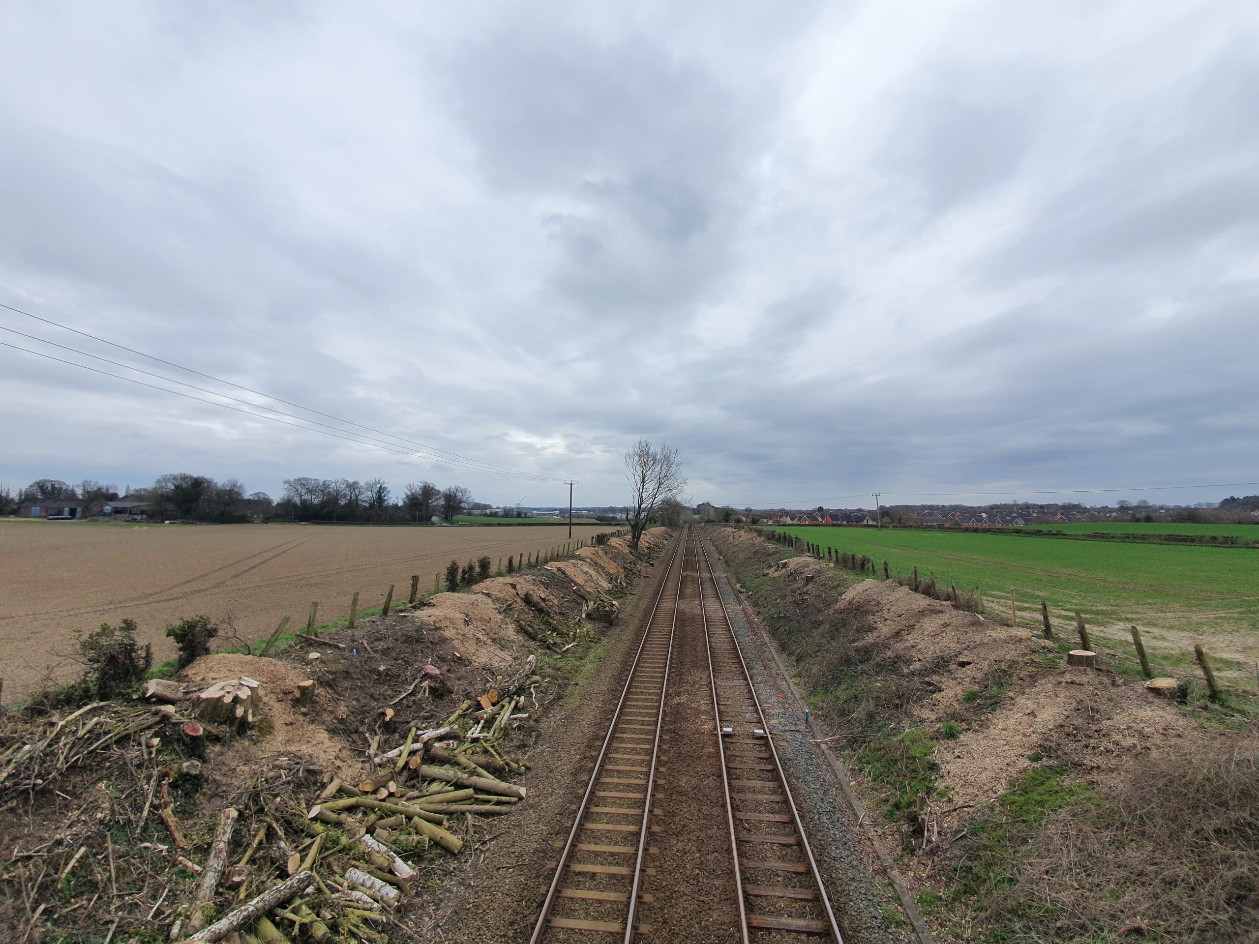 This is the railway line between Norwich and Sheringham, with trees removed from the side of the embankment. I’m always slightly surprised when people are horrified by this, railways really aren’t the best place to have trees growing next to, nor was it usual in most areas to have allowed that to happen. Fallen trees on railway lines aren’t really ideal if I’m being honest.