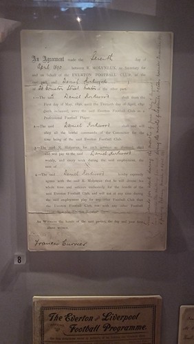 Continuing on from my post about the Museum of Liverpool having the largest collection of Everton memorabilia in the world, this is the contract of Everton player Daniel Kirkwood (1867-1928), dating to 1890. He was to play for the team between 1889 and 1893, later becoming a director of the football club before reaching the giddy heights of Everton’s chairman during the 1909/1910 season.