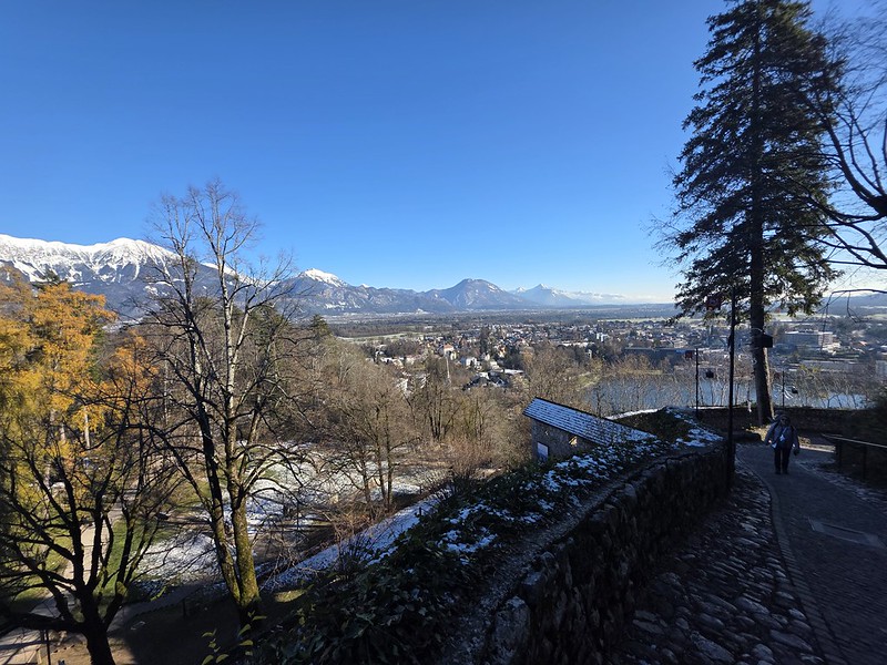 There are some lovely views from up here. I should mention as well that we’re in the Julian Alps here, which is very appropriate.