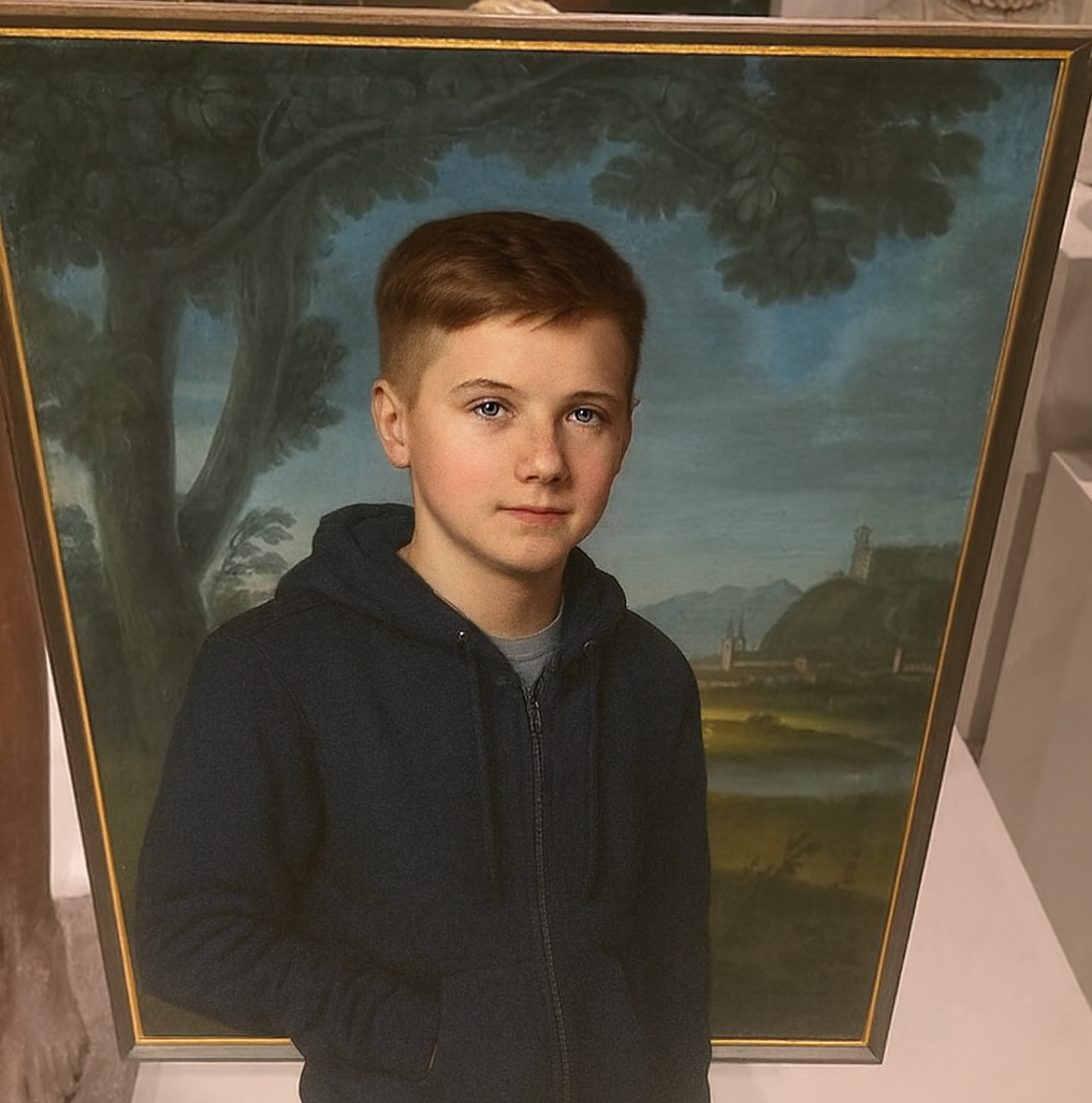 This is how AI has responded to my request to bring him to life as a modern day person and to have him stepping out of the portrait. It might not have done a perfect job, but I like the option to interpret so many exhibits in a different way. This feels far more human to me, I rather think that it has brought it to life.