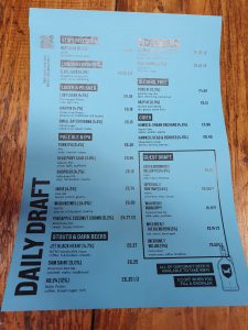 The downstairs bar, which wasn’t in use, which has a step near to the base of the stairs down to it just to add some excitement to the proceedings. I managed to trip on it, but I put that down to me being an idiot, before noting four other reviews by others saying they’ve tripped. Someone will likely take action against Brewdog at some point about that step, but that’s a matter for them…… The ground floor was busier, indeed pretty full, although the first floor wasn’t in use either.