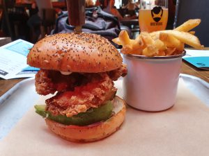 And the Cluck Norris burger, a chicken burger in buttermilk with avocado at the base and cajun mayo at the top. I do like avocado (I accept it’s a junk food compared to my usual diet of heavily processed, but yet glorious, chicken bakes from Greggs) and there was a generous portion of it and it added a lot to the whole burger, both in taste and texture. The chicken burger, and I’m not sure what part of the bird they’re using here, had a bit of a crunch to the outside and had the sufficient flavours that I was hoping for. The fries were moreish, fluffy on the interior and firm on the exterior, all served as a perfectly sufficient portion. Usually, this would be £14, but the Government’s eat out to help out reduced the price to £7, which is much more reasonable.