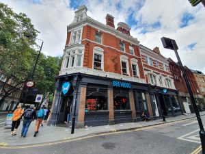 I dread to think how much rent Brewdog must be paying for these premises, but the reviews of the bar are high and hopefully they’re getting it all back comfortably. The range of beers here was quite frabjous, to quote Lewis Carroll, so I’m prepared to forgive the lack of fork as otherwise the customer service was spot-on and the drinks range was better than any Fullers pub than I’ve ever been in…..
