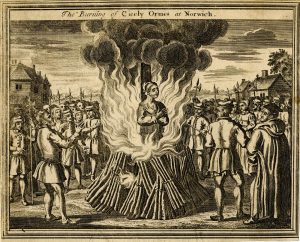 Ormes, who was born in East Dereham, lived in the St. Lawrence parish of the city and when she was aged 21, she was pressured by a Catholic magistrate to denounce her Protestant faith. She did, but she regretted this, and so she recanted. Ormes, the wife of a worsted weaver, was then arrested a few months later and ordered to shut up about her refusal to accept the Catholic faith. She said no, so the magistrate ordered that she be burned to death.