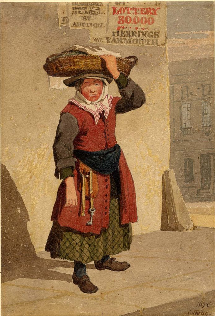 A watercolour of a fishwife in Great Yarmouth by John Sell Cotman (1782-1842) which was acquired by the British Museum in 1902 from James Reeve. They don’t know when it was painted, but Cotman lived in Great Yarmouth between 1812 and 1823, so it was probably then. There’s something quite intriguing about this one-eyed lady, standing in front of a lottery sign, with her key at her waist and her fish on her head. I’m not sure that I can think of another painting which is more evocative of Great Yarmouth at that time. I’m equally unsure what that says about Great Yarmouth or me, but there we go….