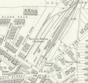 The main part of the station building was closed, so the line could only be accessed by walking around the side. I poked my camera through the gates to take a photo of the concourse area that passengers couldn’t access. There was a sad event in April 1920, when a couple abandoned a four-week old baby on the train from Charing Cross railway station and the child was discovered here and taken to the waiting room, before the police later took the poor young soul to Bromley Infirmary. The newspaper noted that the child was left in the second-class section of the train….