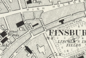 Incidentally, we can tell that the street sign is before the 1965 borough changes, the year that Holborn, Hampstead and St. Pancras were all joined together to form the Borough of Camden. As an aside, in 1900 the Borough of Holborn was formed when the below parishes were all merged together: