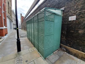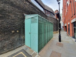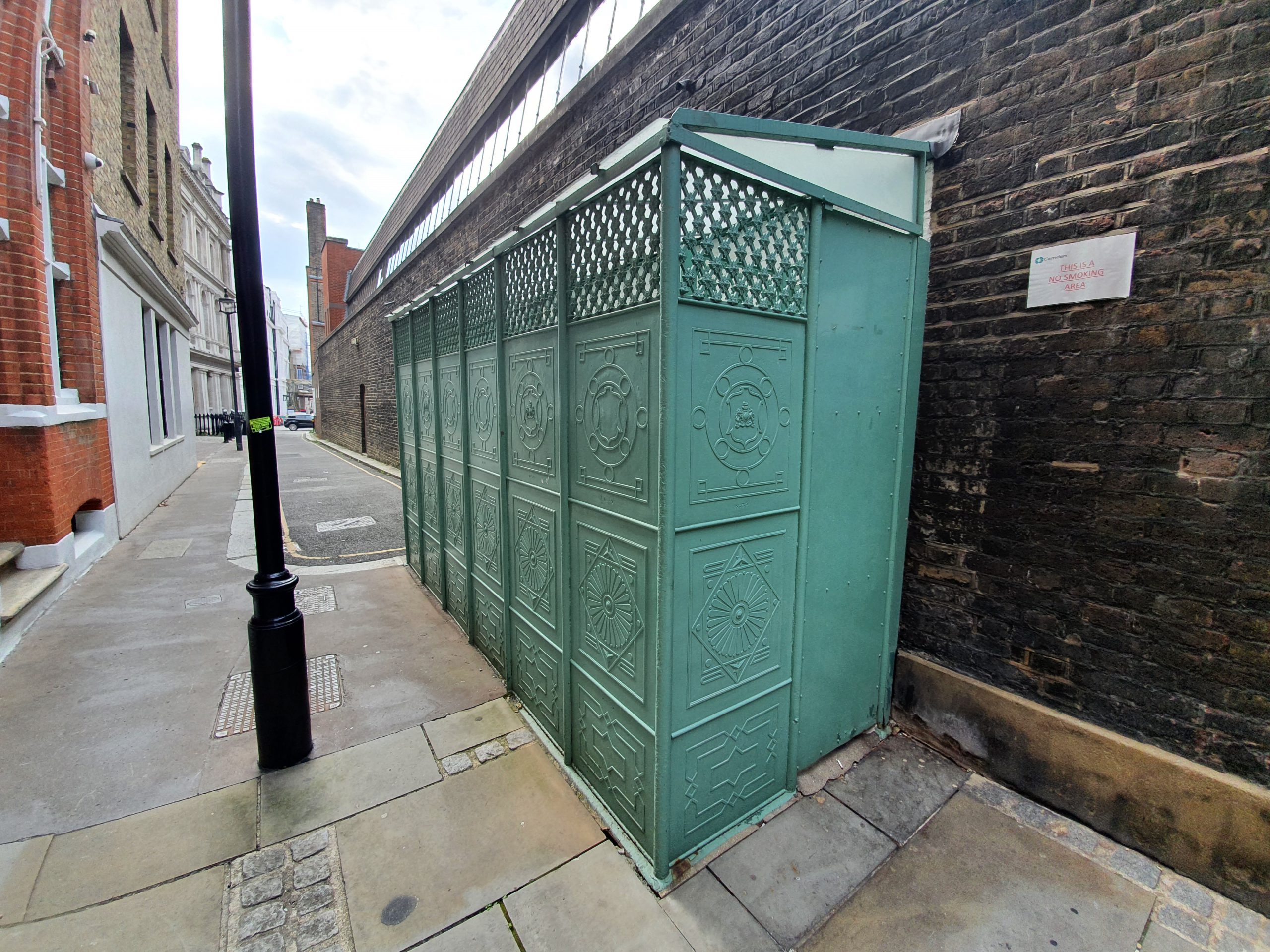 Like most public conveniences in the city, they’re now permanently closed and have been for some time. They’re now just locked shut, although it’s not entirely clear what the owners can do with them other than just use them as some storage shed. The area around them is now all relatively modern, so they’re a reminder of what once was here.