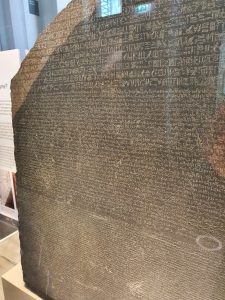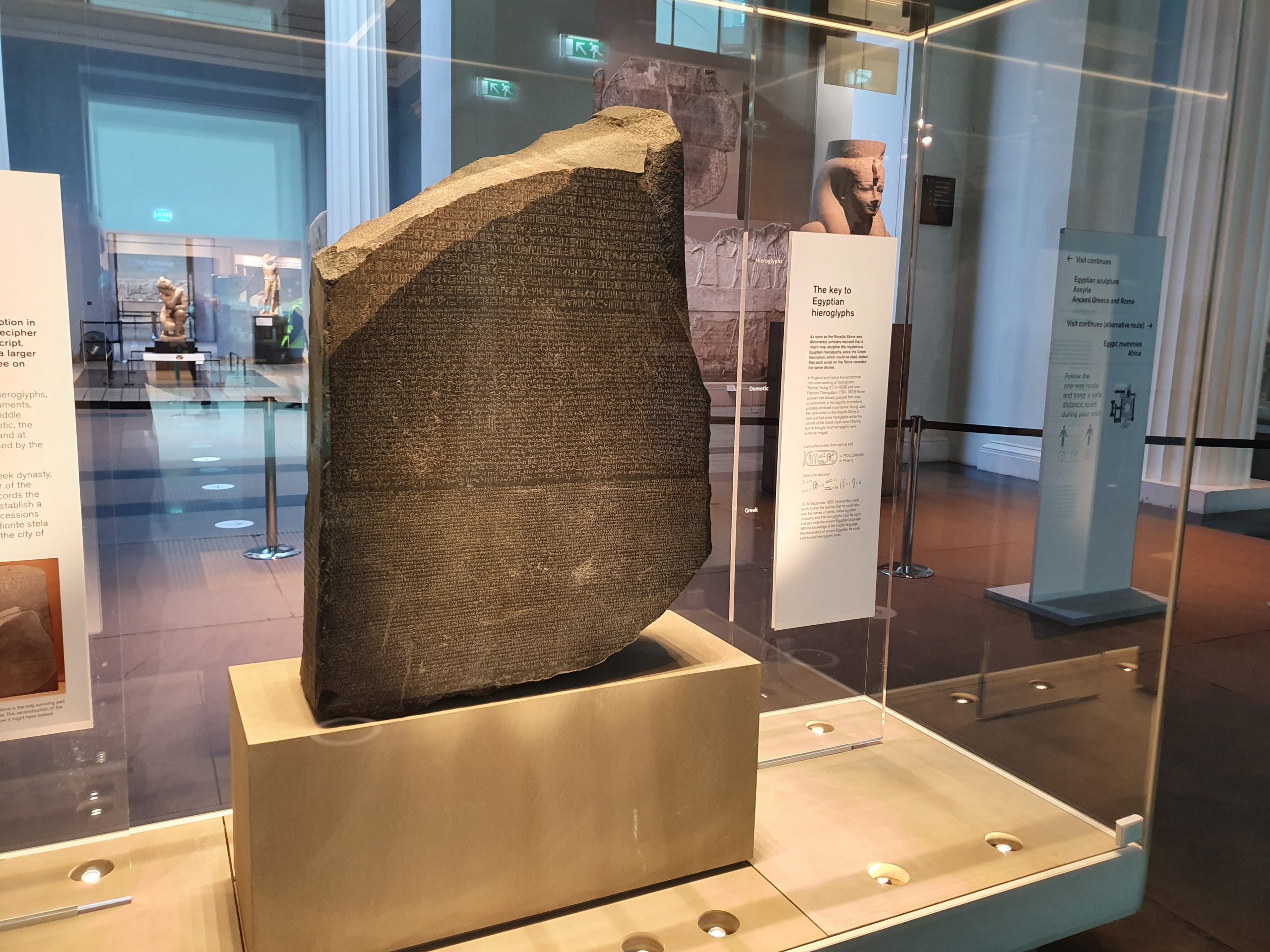 There’s not much point writing much about the Rosetta Stone, it’s done much better in countless other places. But it dates to 196BC and it was rediscovered by the French in 1799, with the British deciding that they wanted it in 1802. The stone went to the British Museum in the same year and it has been there ever since. As visitors kept fiddling with it, the stone was barriered off in 1847, not that this stopped some people. Since 2004 it has been placed behind a rather more secure screen.