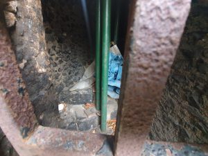 The stone steps into the tower remain, although are gated off. The steps aren’t easily visible due to the assorted litter that has collected up here.
