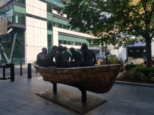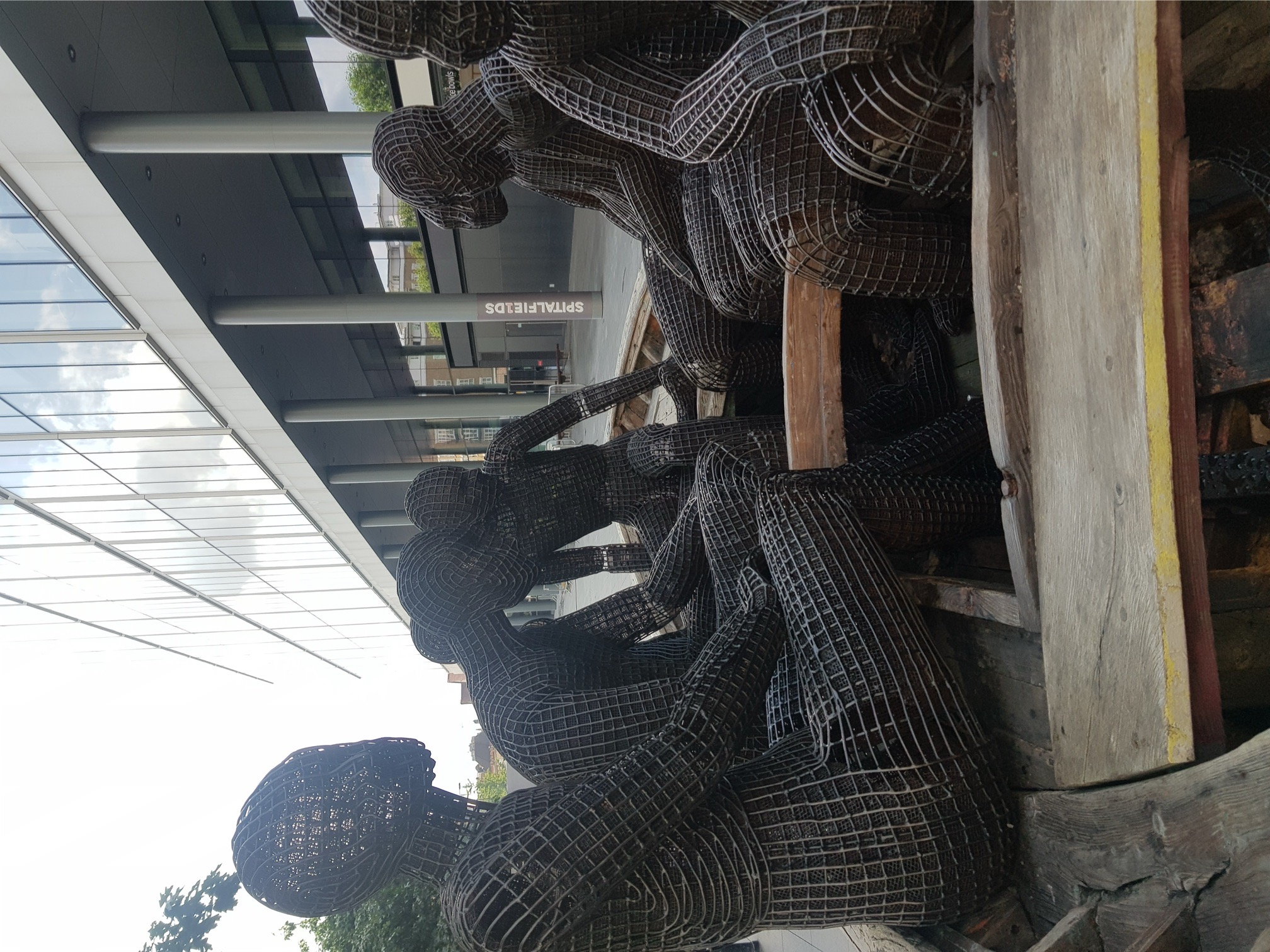 This interesting artwork in Spitalfields is an actual boat which was used to transport refugees from Turkey to the islands of Greece. It has a wider meaning of showing the suffering, terror and struggle of migrants around the world who have to make such perilous crossings.