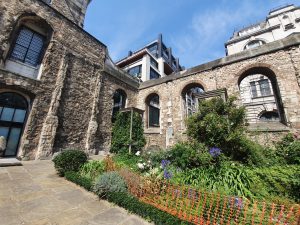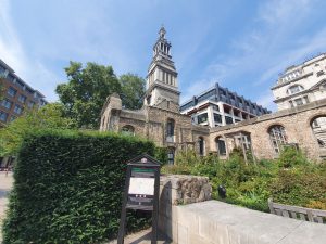 I haven’t paid much attention to these ruins before, but they have a considerable heritage as they are from a monastic church built in the thirteenth century on what is now Newgate Street. The monastery was dissolved during the Reformation and was turned into a parish church which was given by King Henry VIII to the Mayor of London for the use of the city’s population. This church building was though lost, along with most others in the heart of the city, during the Great Fire of London in 1666. The replacement building was designed by Sir Christopher Wren, but this in turn was unfortunately destroyed in 1940 during the London Blitz.