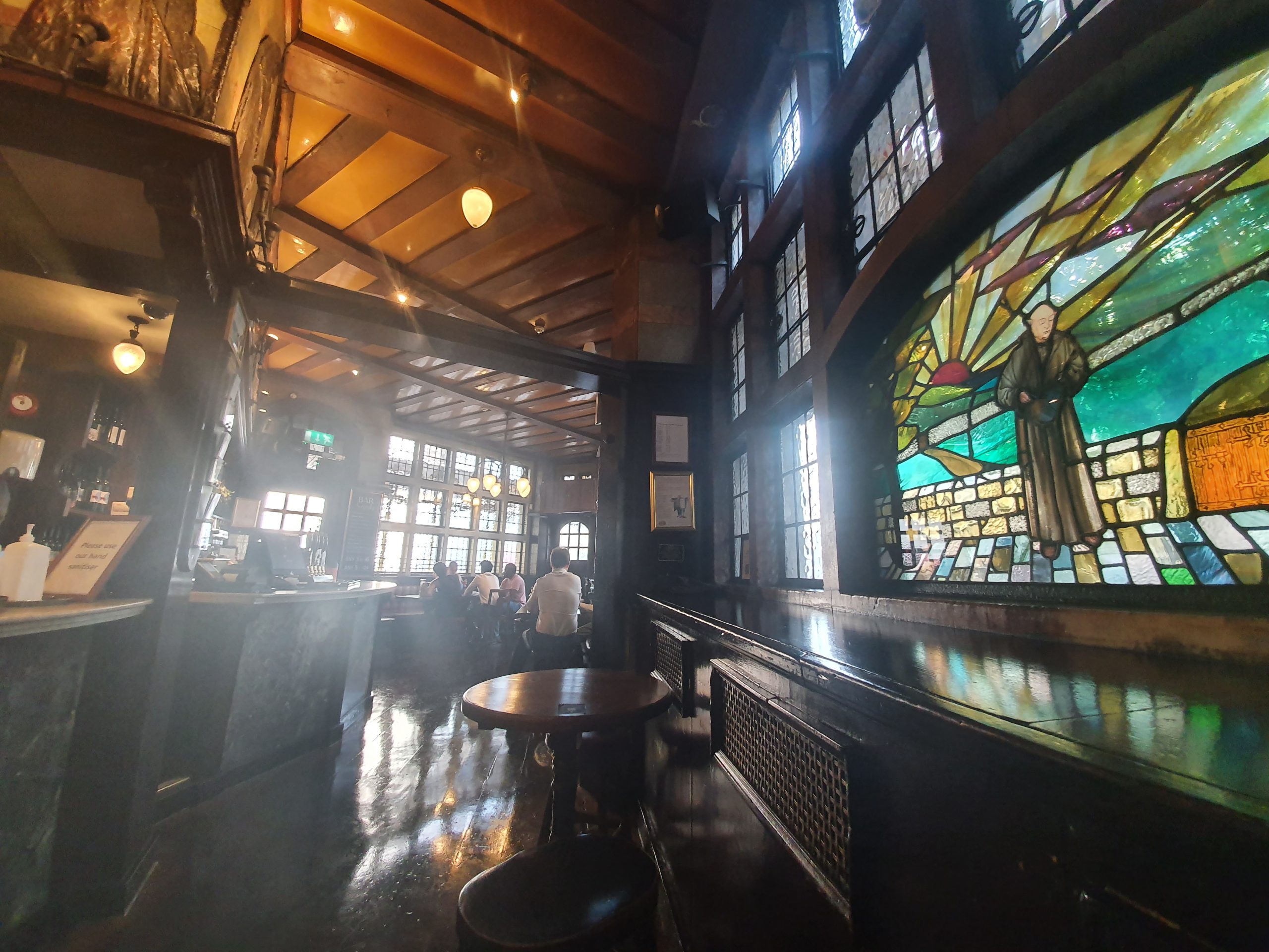 The pub has been here since 1875 and the flatiron style building was designed by the architect H. Fuller-Clark and artist Henry Poole, with John Betjeman being involved in a campaign to prevent its demolition in the 1960s. The pub is in a slightly strange position and I can imagine that a much bigger building would have made more money, but I’m glad that this piece of Victorian history has survived. The pub, as well as the area and the railway station, takes its name from the monastery that was here until the Dissolution of the Monasteries in the sixteenth century.