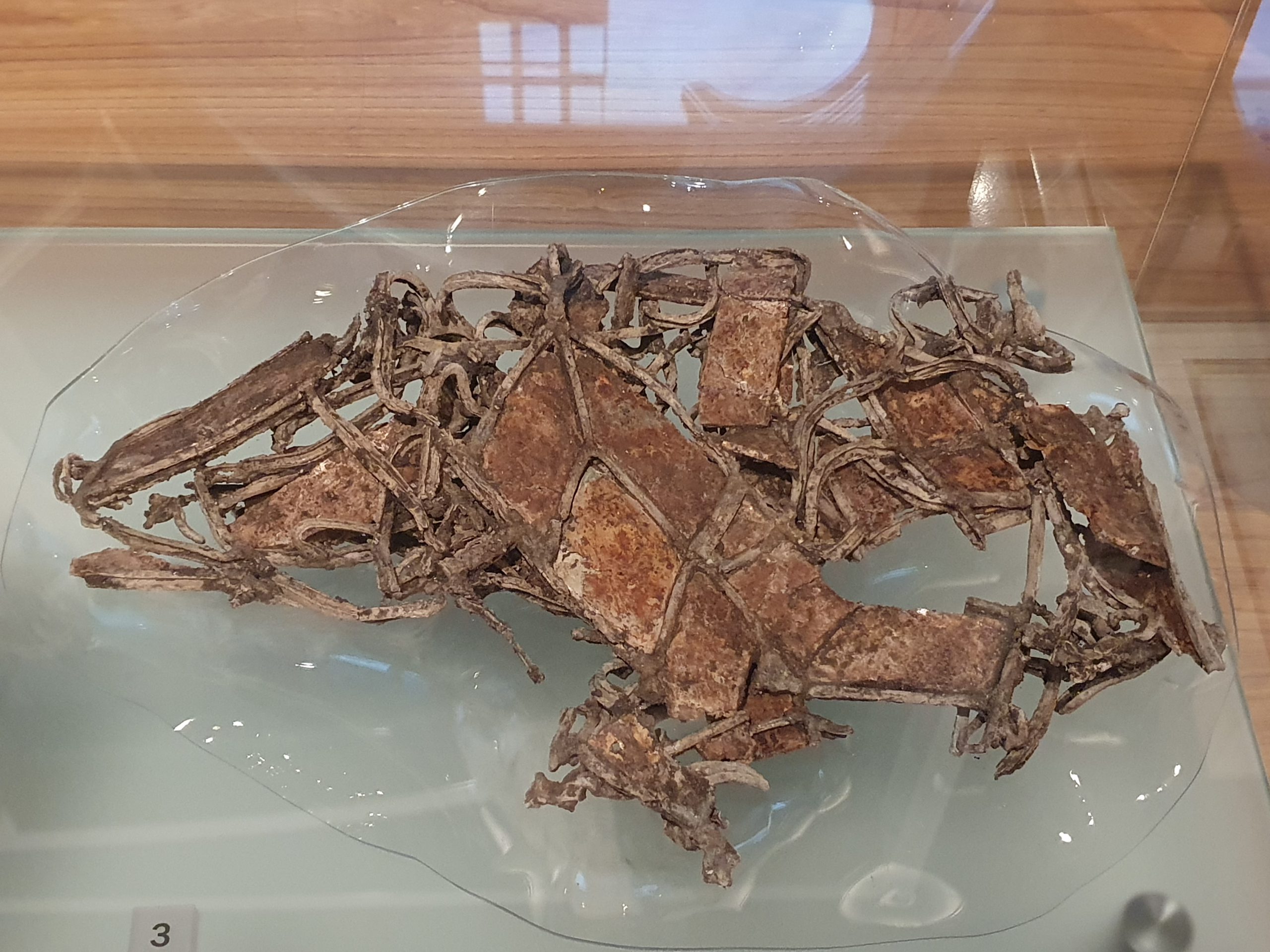 This might not look the most exciting of exhibits at the Museum of London, but there’s a lot of heritage in it. It’s a combined lump of smashed glass and window lead from Merton Priory, which would have been caused during the Dissolution of the Monasteries. It’s not known how old the glass and lead is, but it’s probably from the mid to late fifteenth century.