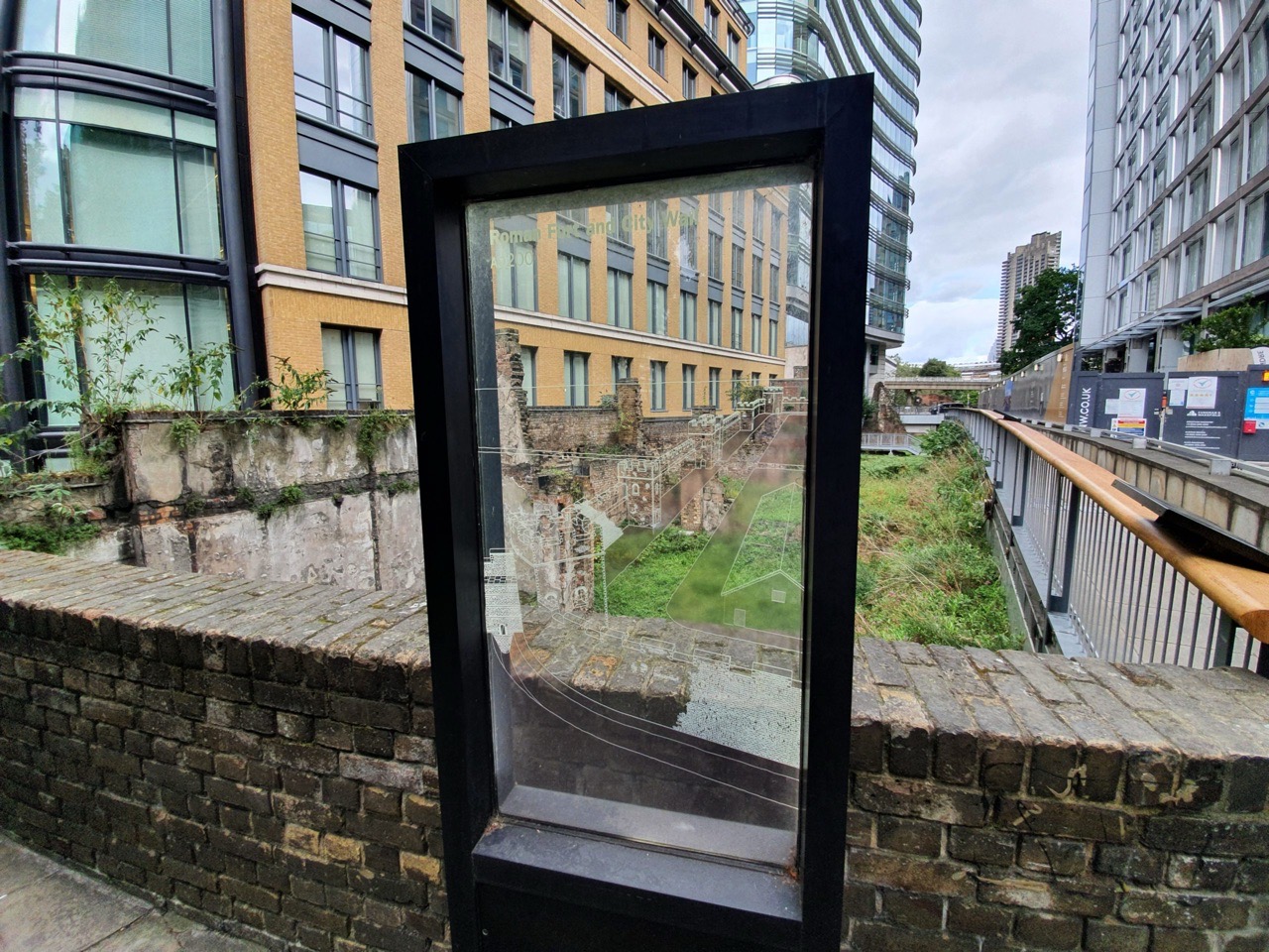 It’s not very clear, but there’s an overlay on this panel which gives an indication of what the area looked like in Roman times.