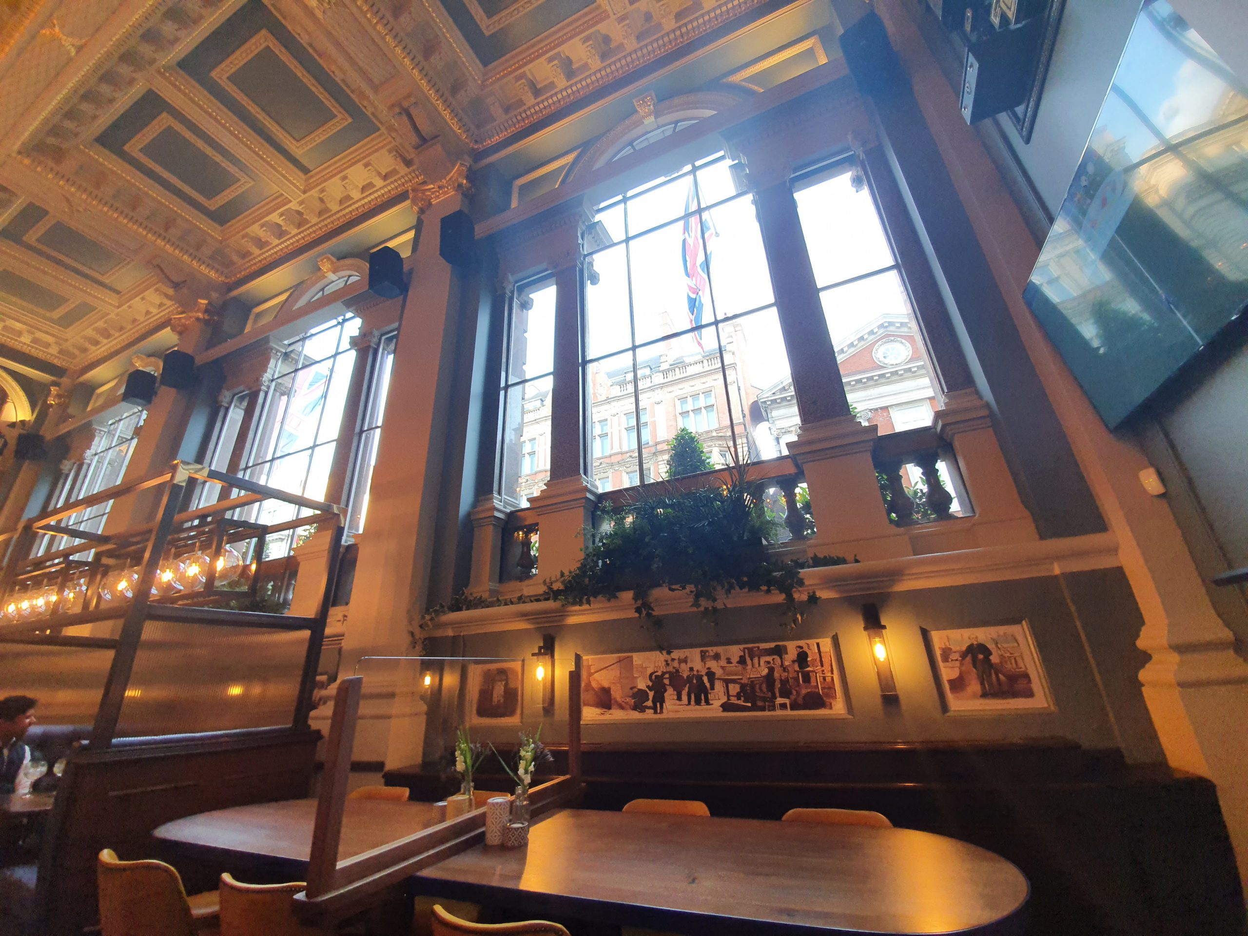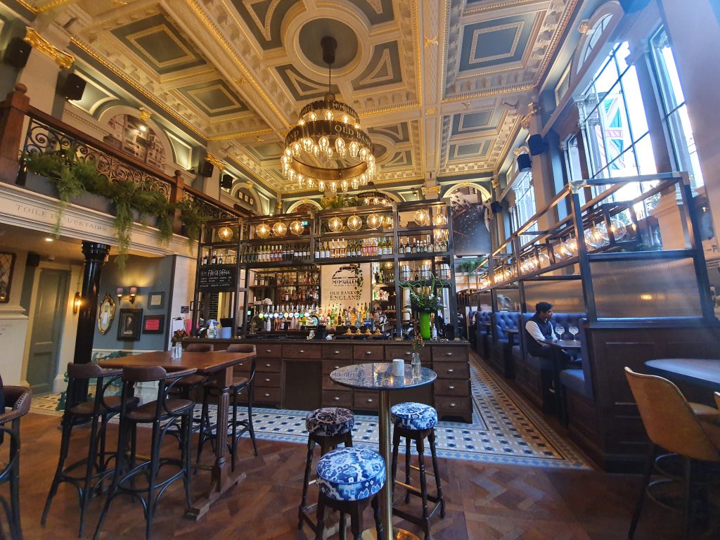 I had guessed the bit about decadent correctly. However, it wasn’t a gastropub at all as I had thought it might be, although their pies are apparently pretty decent. The building was from 1888 until 1975 used by the Bank of England as their Law Courts and then it was for a while used by a building society, before it was used for a much better purpose, as a pub. The building once had gold bullion in its cellars and the Wikipedia page for the building notes that it might have held the Crown Jewels for a time.