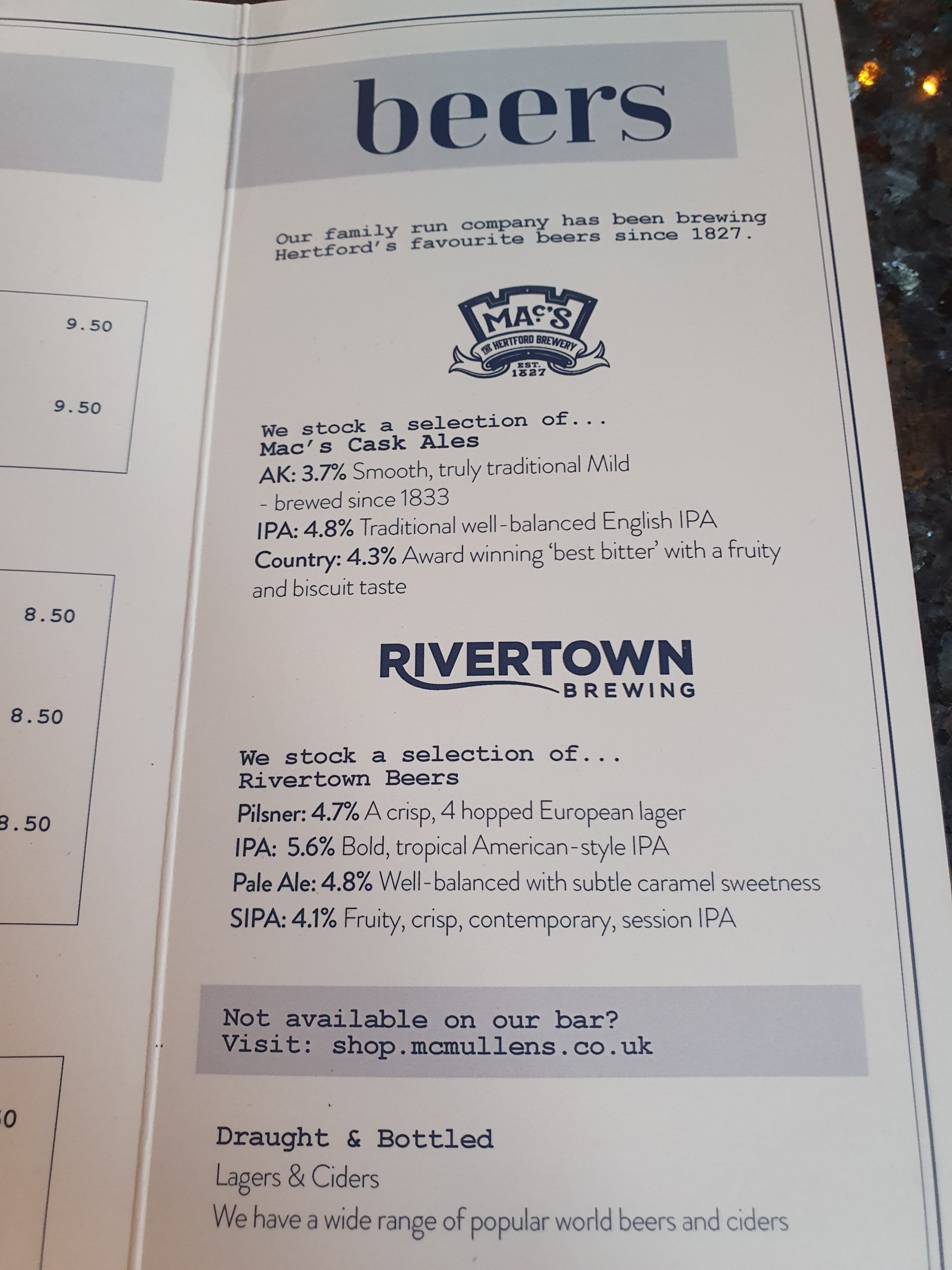 It’s a pub run by McMullen brewery, so it had their beers in, which is fair enough for their perspective, but gives less incentive for me to return to try something new.