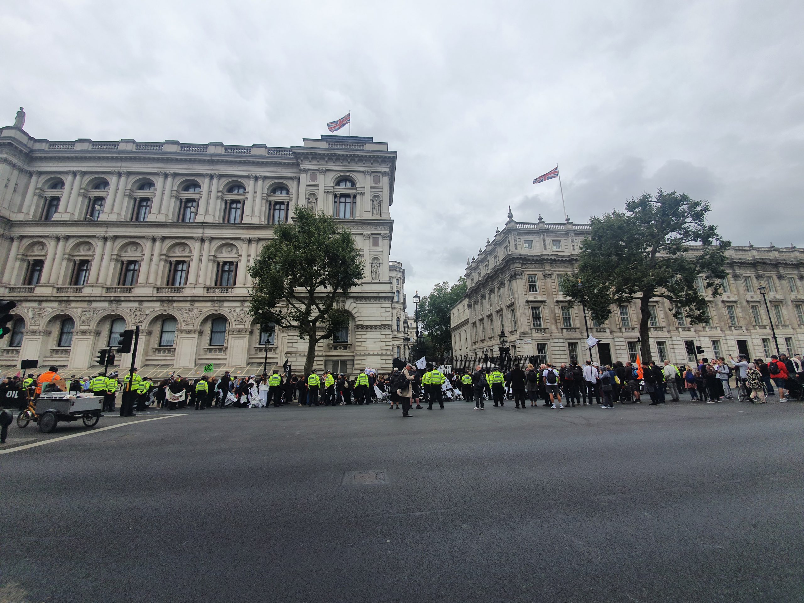 Just photos in this post of the Extinction Rebellion protest outside Downing Street in London this morning. I won’t get involved in politics on my little blog (I’m very pro-rail, which is a tricky subject), but it was a friendly protest although some car drivers shouted abuse at the protesters. The police were very professional and were being engaging and helpful, so at least it was well-mannered and cars weren’t overly delayed.