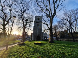 There wasn’t initially sufficient money to build a tower at the new church, so this part of the old structure was left standing to hold the bells. The new church didn’t receive its tower until 1814, but it was then discovered that the structure wasn’t strong enough to hold the bells, which wasn’t exactly ideal. Finally, in the 1850s, the work was completed to allow the bells to be moved to the new church, and by this time, it was decided to just leave the tower standing at the old church.