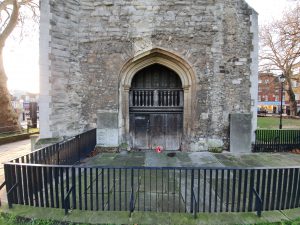 The tower is all that is left of St. Augustine’s Church in Hackney, which was known as St. John’s Church between 1660 and 1798, the change being a recognition of the former financial involvement of the Knights of St. John. The main part of the building was demolished in 1798, with a larger replacement church being constructed nearby, which is also known as St. John’s. The tower is now the oldest building still standing in Hackney, although the initial intentions were to also demolish this when the new church opened.