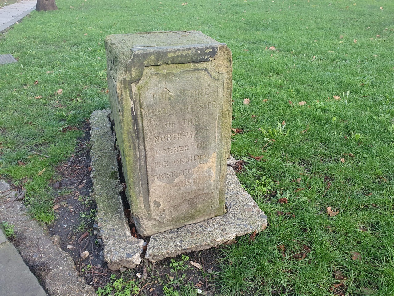 Stones have been placed to mark where the corners of the old church used to be, this one marks the north-west corner.