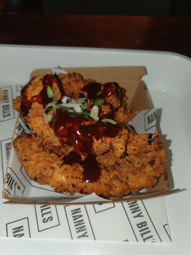 In London, and in other Tier 2 areas, it’s essential to order a substantial meal with any alcoholic drink. So, I ordered buttermilk chicken strips and they were delightful, a light coating which was soft and not overly crunchy, with tender chicken. The BBQ sauce added flavour and richness, the spring onions some extra texture. The staff member explained that they’ve reprinted the menu to show which dishes are classed as substantial meals and it’s evident they’re staying firmly within the rules and the spirit of the rules. They don’t class chips as a substantial meal.