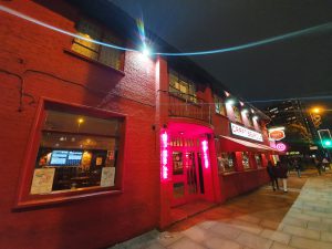 The interior of the bar is minimalistic, retro and also very slightly exciting with those beer pumps. In the past, the left-hand side has been a kitchen area, but it’s all been opened out now.