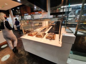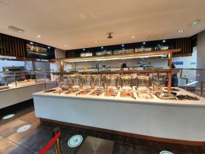 The buffet arrangement, with the usual high levels of choice. The roasts section was a bit depleted, but otherwise everything seemed well stocked. The one minor difficulty that I had was the gloves that they ask customers to use, as I found them challenging to open, but they’re a good idea. I had wondered whether Cosmo would revert to a system of staff serving customers, but that would have required a change of equipment and design, so wasn’t really viable.