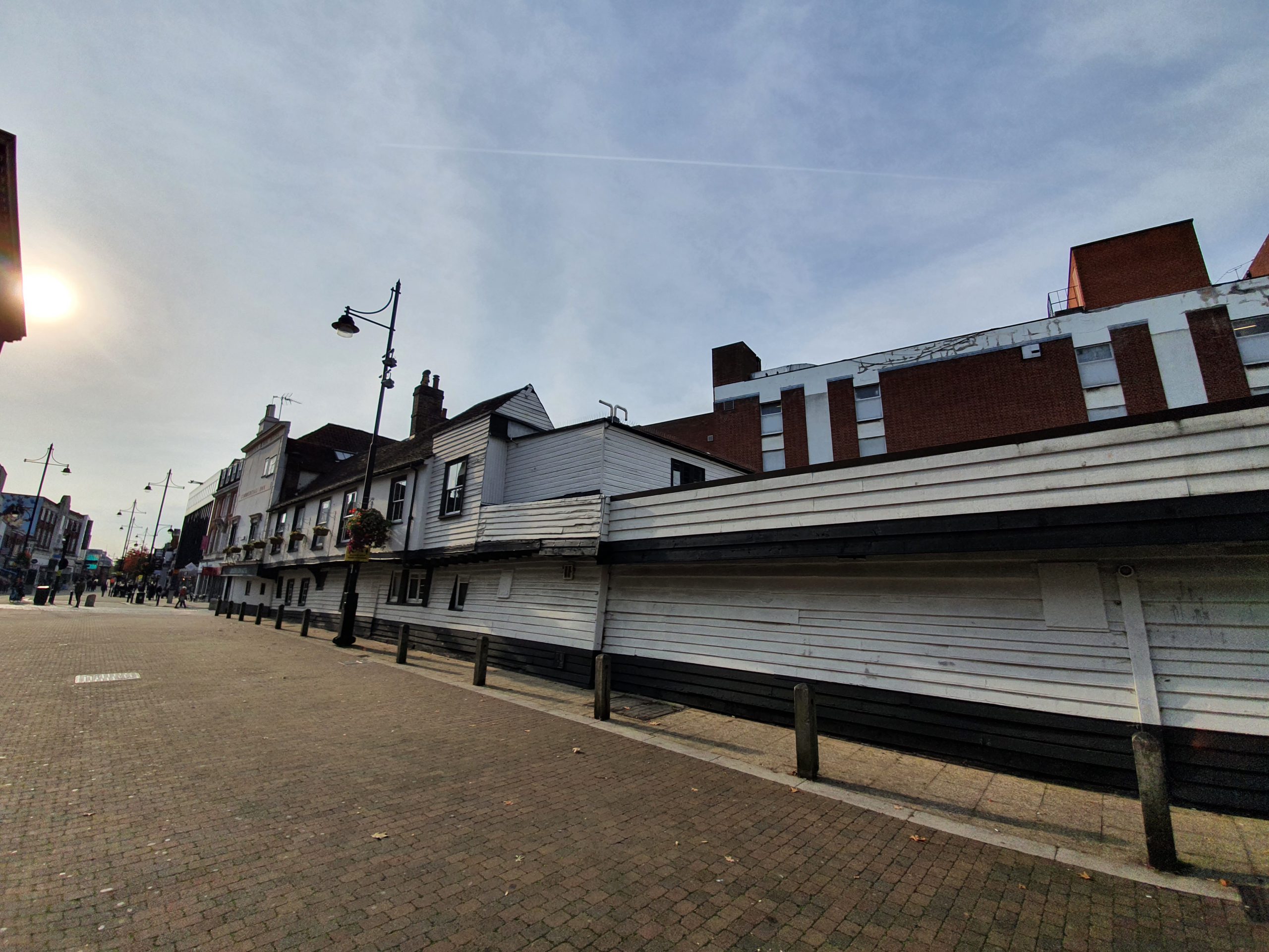 The side of the pub. Staggeringly, as recently as the 1960s there was discussion about knocking the pub down to help build the new road system around Romford, but this was fortunately avoided.