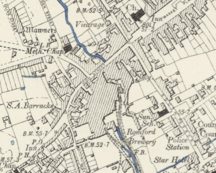 This plaque is on the external wall of the former Star Brewery building, which is now Havering Museum. I didn’t understand the relevance of why it was here, but a map helps to make sense of this. They knocked down the bridge in 1906 and it’s been partly covered over now. It’s the River Rom and the brewery had incorporated it into their brewing process, clearly deciding that the High Street no longer needed a bridge.
