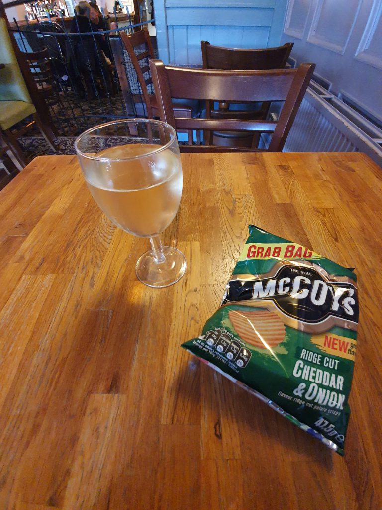 I could have had a pint of Fosters, but that thought really didn’t appeal, hence the free white wine. I bought the crisps and they were rather lovely. I’m not really a wine person, but it tasted OK, that’s about my limit of comment on that. The pub is reasonably well reviewed, but there are a few comments running through that they’re offering no craft beer and their choice of real ales is either weak or not there at all. Unfortunately, this is a lager-led pub, but then again, if that’s what keeps them busy, I guess that’s working for them. But, for decent beer, I’d recommend the Upminster Taproom.