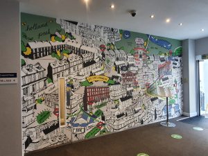 The wall decoration in the reception area, a really quite nice and decorative map of the local area.
