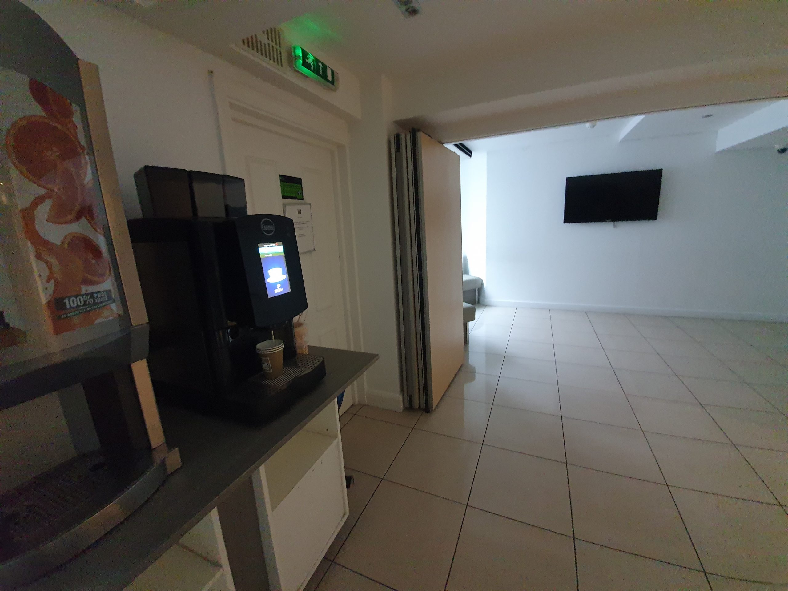 The coffee machine, alongside spare coffee sachets and tea bags, was kept in action for those who wanted to venture down to the basement.