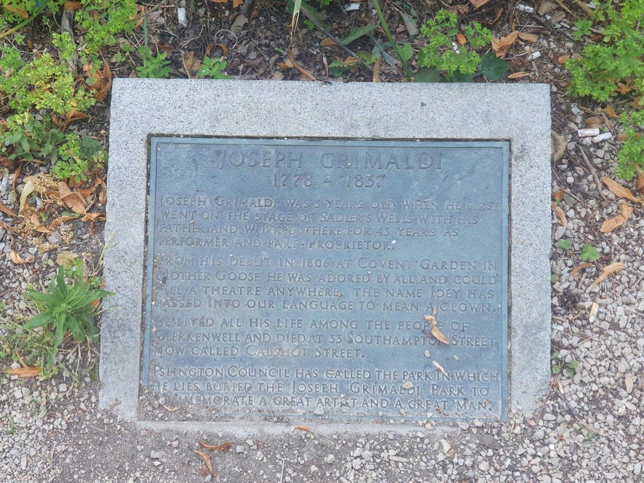 At least the renaming of the former churchyard in honour of Joseph Grimaldi means that his grave isn’t forgotten, although sadly many of the other graves here have now become rather neglected.