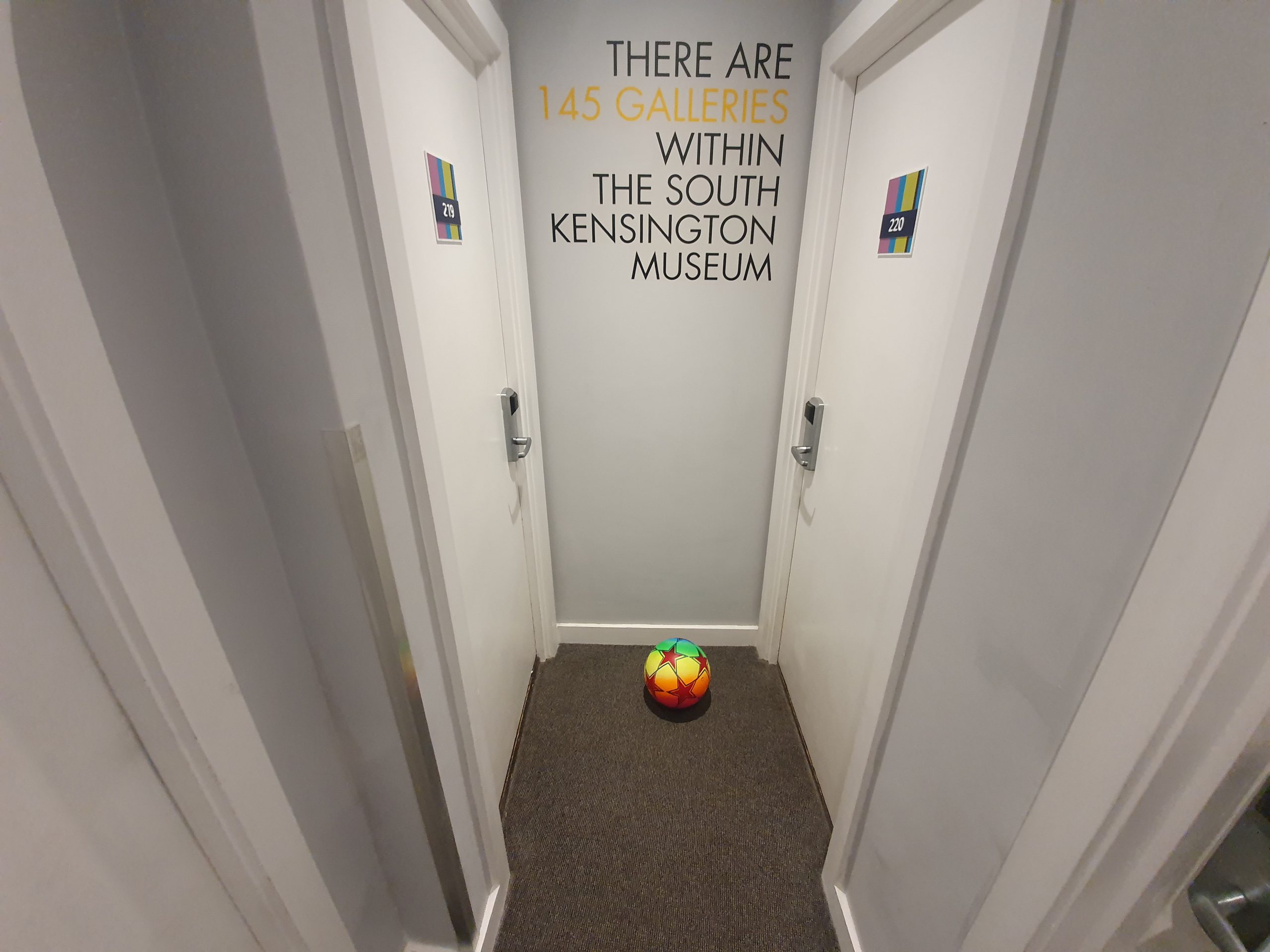 Richard was staying at the same hotel, and was on the floor above. He laughed when he discovered the lift was out of order, as he likes carrying his giant bag up two flights of stairs. And, as an extra treat, there was a football outside of his room. Someone must have known that one of Norfolk’s biggest football fans was staying there. On a more petty level, I was very pleased to note that Richard didn’t have his own corridor in his more expensive room (although he did have larger cardboard cups than I did for his drinks, so he had a win there).