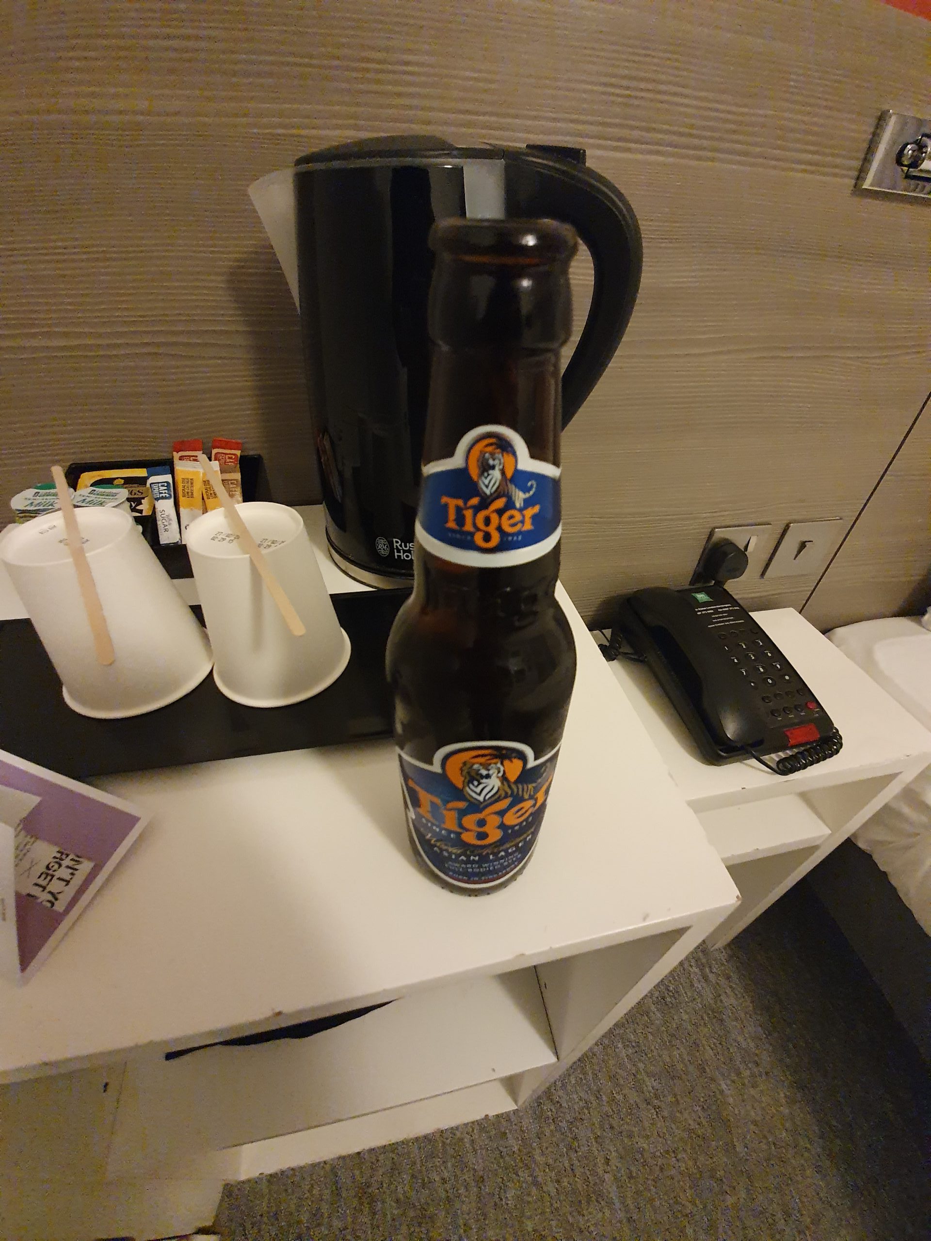 The Tiger was the welcome drink I went for (I won’t tut again that the hotel could do more here), which isn’t high on my list of favourites, but it adds some variety to proceedings. There’s a rather more decadent kettle in this room than in the other ones….