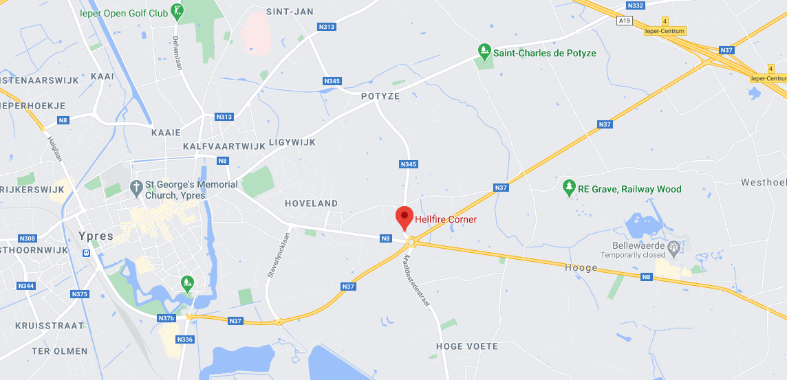 There’s a stone marker at the site now, an otherwise innocuous roundabout on the outskirts of Ypres. The marker is one of a series which show the furthest point that the German troops were able to reach.