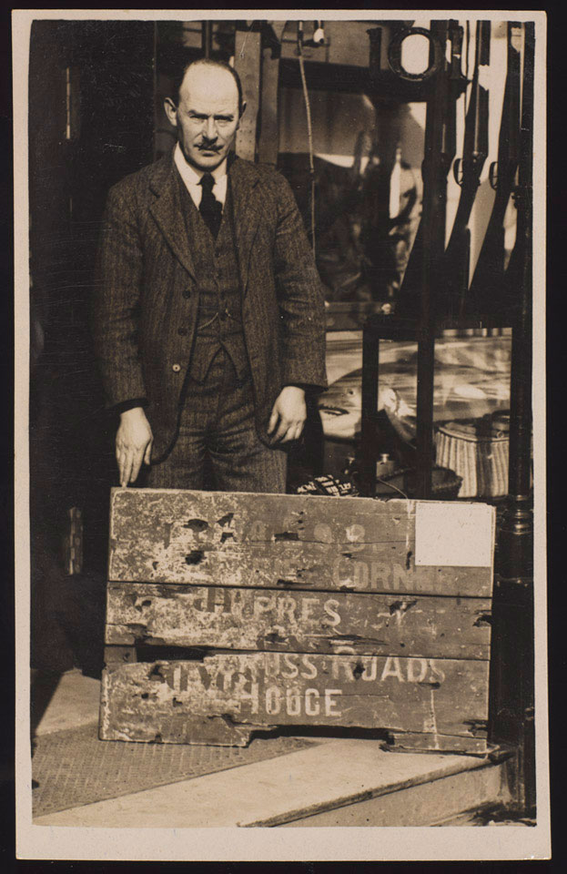 The sign was brought back from Belgium by William Storie (above) and he used it as a promotional device to encourage sales at his shop in Edinburgh. The above photo was taken in March 1920, with the sign being seemingly nearly undamaged since then, although it seems to have spent much of its life in a storeroom before being donated to the National Army Museum in 1996.