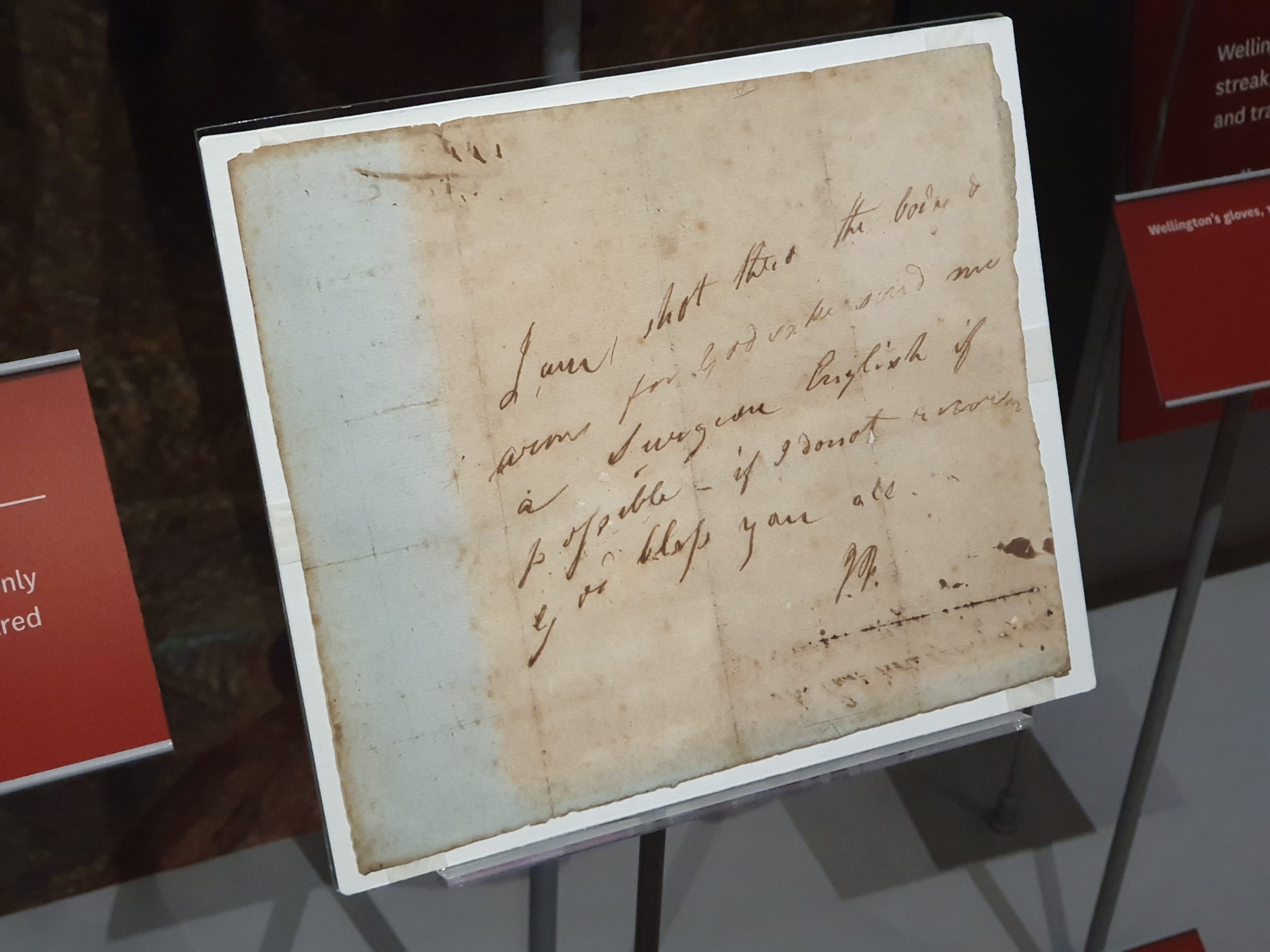 Well, this is cheery, a note written in 1810 by Joseph Fenwick in his own blood. The note reads “I am shot thro the body and arms – for God’s sake send me a surgeon, English if possible. If I do not recover God bless you all”. Unfortunately, Joseph died shortly afterwards.