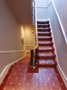 The stairs have a protective covering on, I assume due to decoration work which is going on.